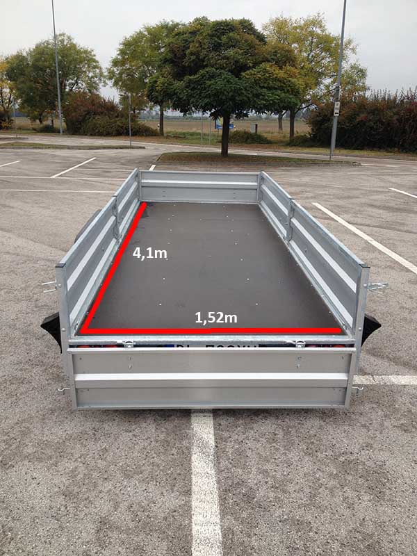 Dvojnápravový vozik, ložná plocha: 4,1m (dĺžka) x 1,52m (šírka) x